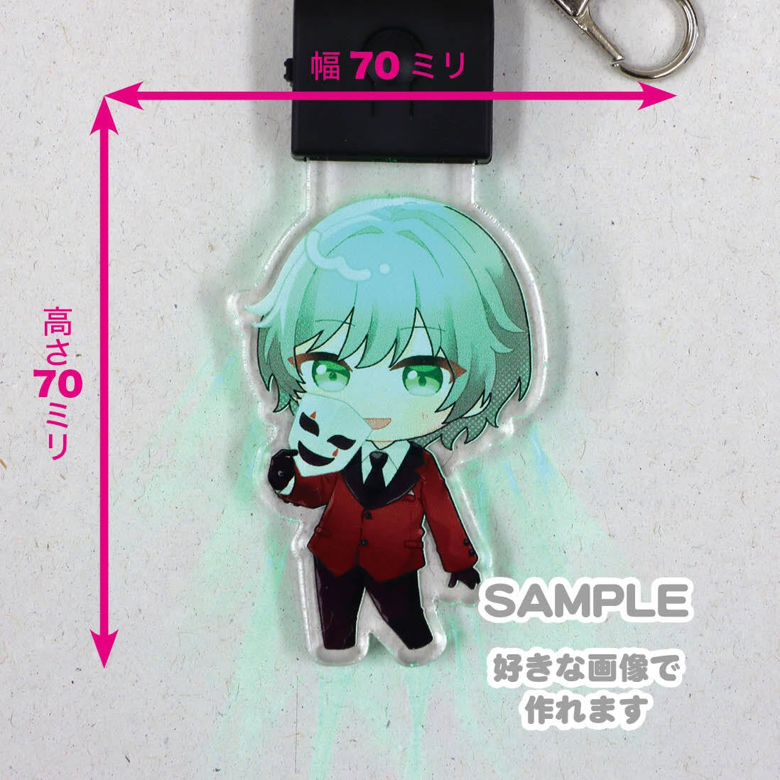 光るアクリルキーホルダー70×70ミリ【USB充電式】